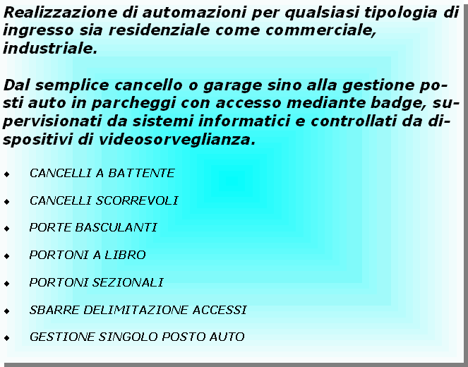HOME PAGE | SICUREZZA | DOMOTICA | AUTOMAZIONE INGRESSI | SISTEMI D'AUTOMAZIONE INDUSTRIALE | ASSISTENZA TECNICA